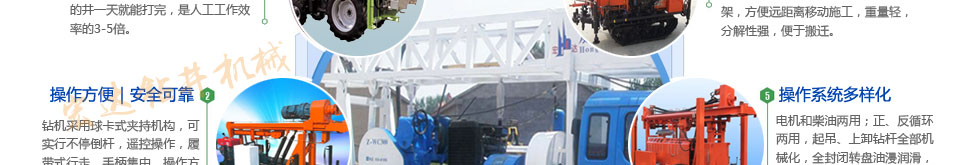 公司始終遵循"客戶第一、團(tuán)隊(duì)精神、長(zhǎng)遠(yuǎn)利益、以人為本"的經(jīng)營(yíng)理念。打井機(jī)公司擁有雄厚的技術(shù)力量。為廣大客戶提供熱情、周到、高標(biāo)準(zhǔn)的服務(wù)。公司擁有完整、科學(xué)的質(zhì)量管理體系。能為客戶提供滿意的服務(wù)是我們公司的榮耀。打造鉆井機(jī)設(shè)備精品、引導(dǎo)技術(shù)潮流是我們永久的追求。