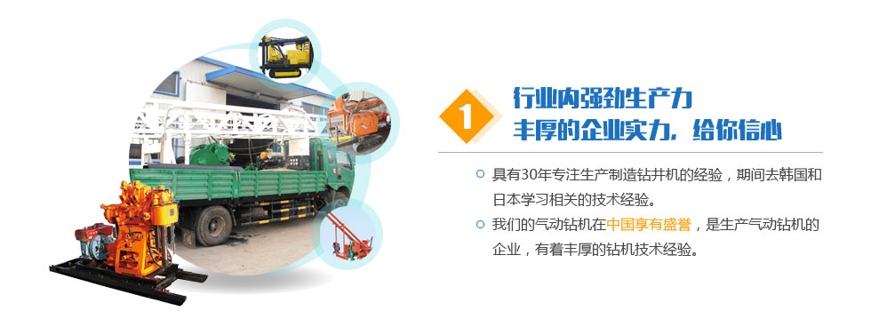 客戶共創(chuàng)雙贏。堅(jiān)持科技先導(dǎo)、質(zhì)量第一、信譽(yù)第一。讓我們用真誠(chéng)的智慧共同締造事業(yè)的成功。讓我們用真誠(chéng)的智慧共同締造事業(yè)的成功。希望與您的合作,能為我們的雙方共添輝煌。經(jīng)營(yíng)宗旨:質(zhì)量求生存,信譽(yù)樹(shù)品牌,價(jià)格贏打井設(shè)備市場(chǎng),創(chuàng)新圖發(fā)展。我們將以一流的技術(shù)換取您的信賴和欣慰。公司以人為本,廣納天下人才,技術(shù)力量雄厚。公司堅(jiān)持以人為本,以優(yōu)取勝,精誠(chéng)服務(wù),持續(xù)改進(jìn)的質(zhì)量方針和氣動(dòng)鉆機(jī)服務(wù)宗旨。真誠(chéng)地與